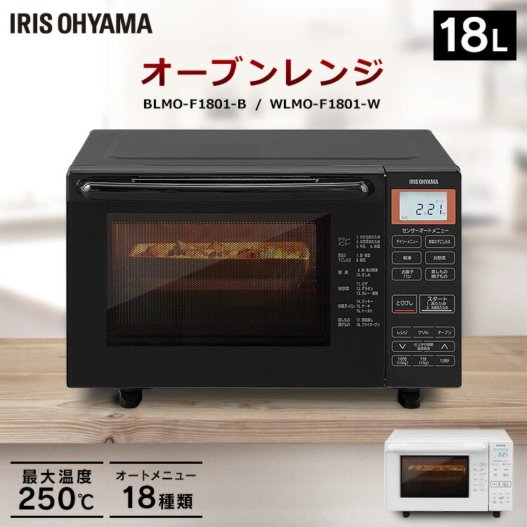 レンジ オーブンレンジ 18L BLMO-F1801-B WLMO-F1801-W ブラック ホワイトレンジ オーブン 家電 フラットテーブル 台所 グリル 一人暮らし ひとり暮らし オーブンレンジ フラットタイプ 簡単オーブン アイリスオーヤマ