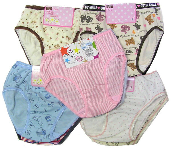 女児 綿混2枚組み柄お任せショーツ 140〜165 かわいい2枚セット 2セットまで1通に入ります。